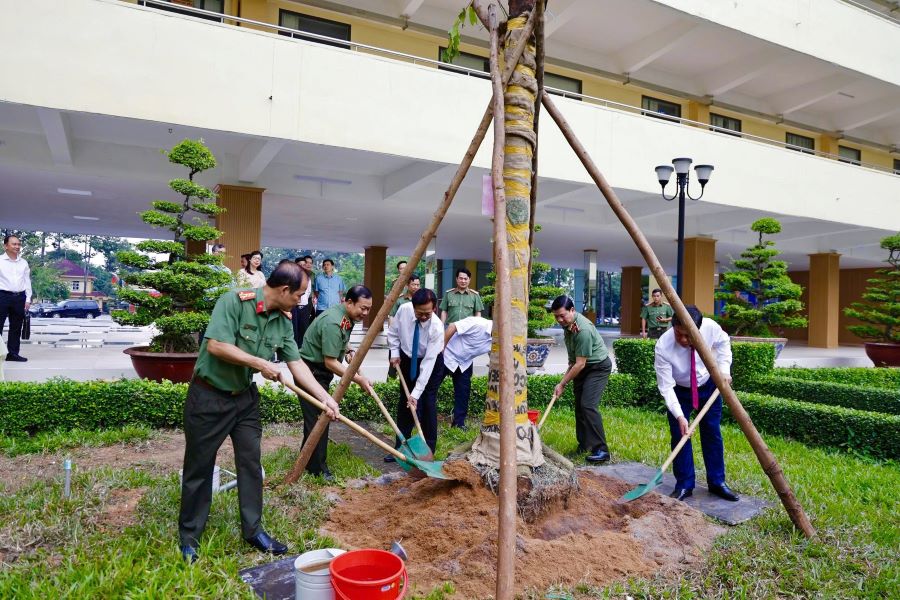 Trước đó, đồng chí Nguyễn Tấn Dũng và các đại biểu đã dâng hương Chủ tịch Hồ Chí Minh, thăm Phòng truyền thống và tham gia hoạt động trồng cây lưu niệm trong khuôn viên Trường Đại học An ninh nhân dân.